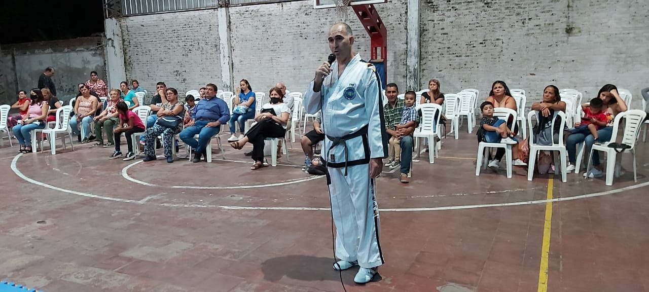 En la cancha de básquet del histórico club Social y Deportivo Villa de Alderetes, mismo que está siendo refaccionado; se llevó a cabo una exhibición del arte marcial milenaria en honor al extenso trabajo por el deporte que promociona y defiende.