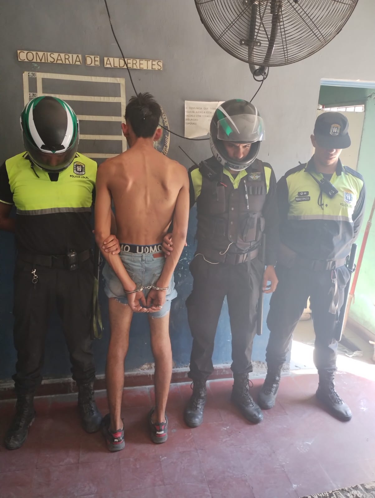 Pasadas las 10:30, motoristas de la Policía Local Alderetes, realizaban su habitual recorrido en las adyacencias de la Av. Rivadavia. Para el retorno hacia la arteria principal ingresaron por calle Güemes para luego introducirse en Mitre; y fue allí donde de manera sorpresiva se toparon con la imagen de un tumulto de personas que observaban el violento accionar de Alan, un joven conocido por los reiterados desmanes y delitos cometidos contra vecinos del sector Centro-Oeste de Alderetes.