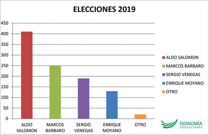 Por otro lado el candidato por el oficialismo Aldo Salomón lidera por amplio margen las encuestas publicadas por todas las consultoras que lanzaron sus sondeos en la ciudad que nunca duerme.
