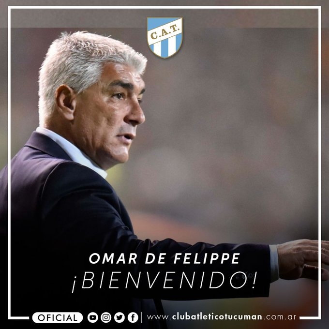 Desde la cuenta oficial del club anunciaron que una vez que finalice la Copa Maradona, asumirá el entrenador Omar De Felippe. Además, agregaron que el próximo lunes llegará a Tucumán para firmar su contrato y realizar su presentación oficial.