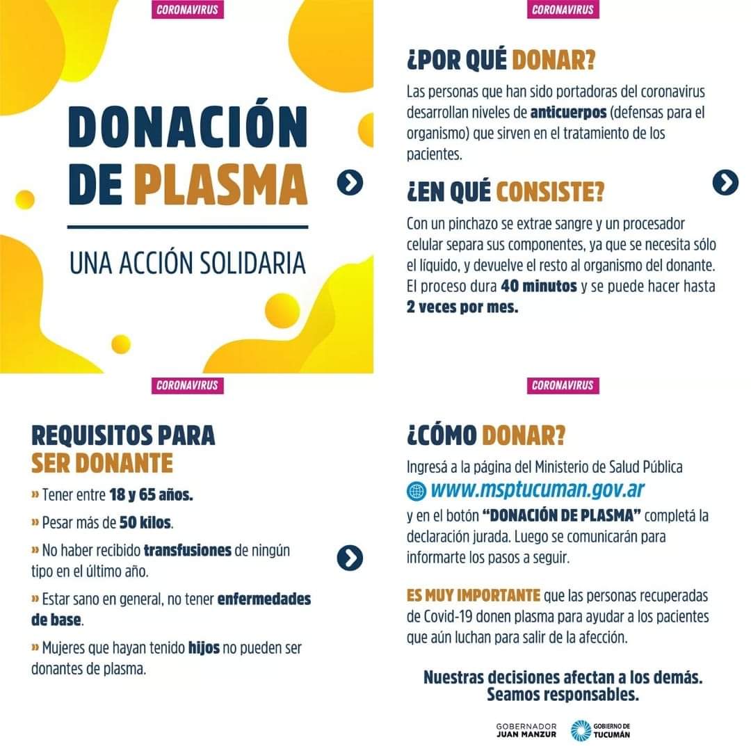 Desde todos los ámbitos sanitarios concuerdan que se hace necesario y urgente “que los pacientes infectados y recuperados, se acerquen y donen su plasma para ayudar al tratamiento a los nuevos contagiados”.