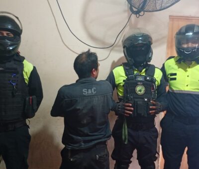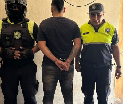 Mas informaciónUn individuo de 27 años, identificado por su apodo, fue reducido y aprehendido por personal policial tras atacar a una mujer en una vivienda del Pasaj