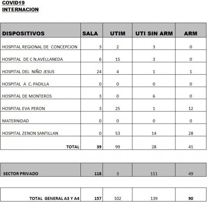 La información es dinámica y se puede modificar diariamente; por lo tanto se solicita a los medios de comunicación y a la población en general que consulten fuentes oficiales: Ministerio de Salud de la Nación y Ministerio de Salud de Tucumán, ya que se notificará de forma permanente.