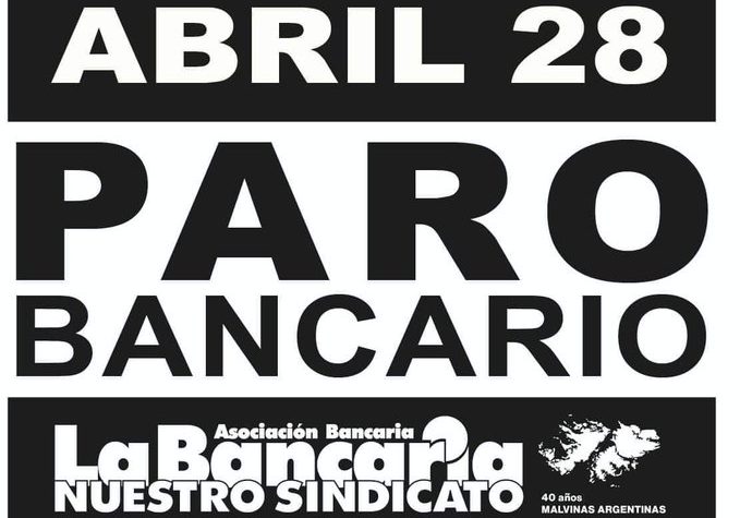 La Asociación Bancaria decidió llevar a cabo un paro nacional por 24 horas el próximo jueves 28 de abril ante el fracaso en la negociación paritaria y, en busca de frenar el cese de actividades en las sucursales de todo el país, se realizará hoy una reunión en el ministerio de Trabajo entre los gremios y los banqueros.