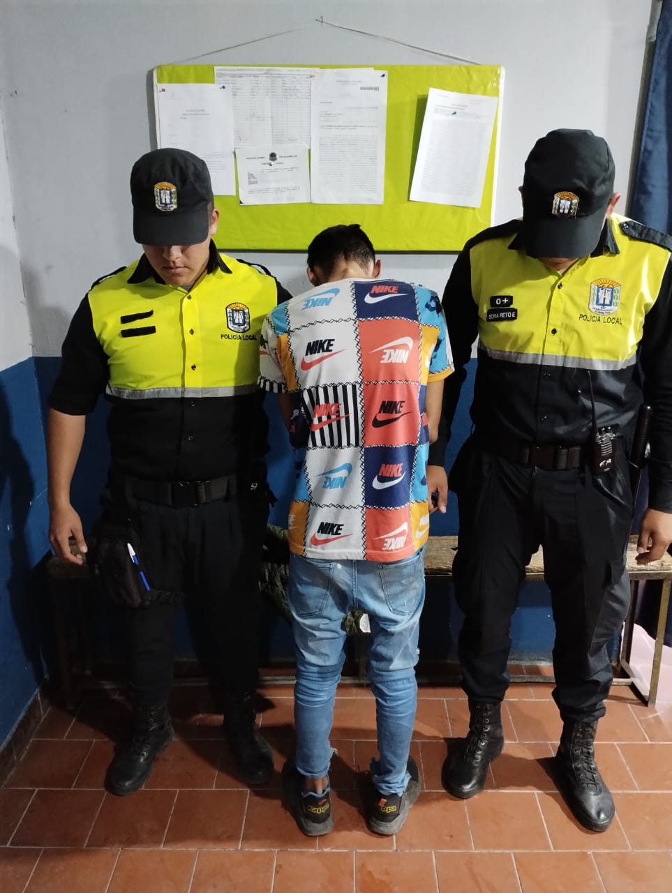 El pasado jueves, aproximadamente a las 13:30 Hs. agentes del móvil M23 de la Policía Local Alderetes realizaban su habitual recorrido por el B° Piloto, cuando en las inmediaciones del jardín de la Escuela Niñez Tucumana; fueron advertidos por una mujer de que su ex pareja estaba fuera de su domicilio aguardando por su llegada.