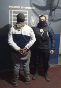 También, la GN detuvo un sujeto que forzó a los golpes la puerta de una pollería, sin que haya podido entrar, dado que, por su articulación con el Centro de Monitoreo, junto a efectivos de la Policía Local-PLA habían sido alertados al instante, por lo cual arribaron al instante en dicho negocio y después de reducir al delincuente, lo esposaron y trasladaron a La Comisaria