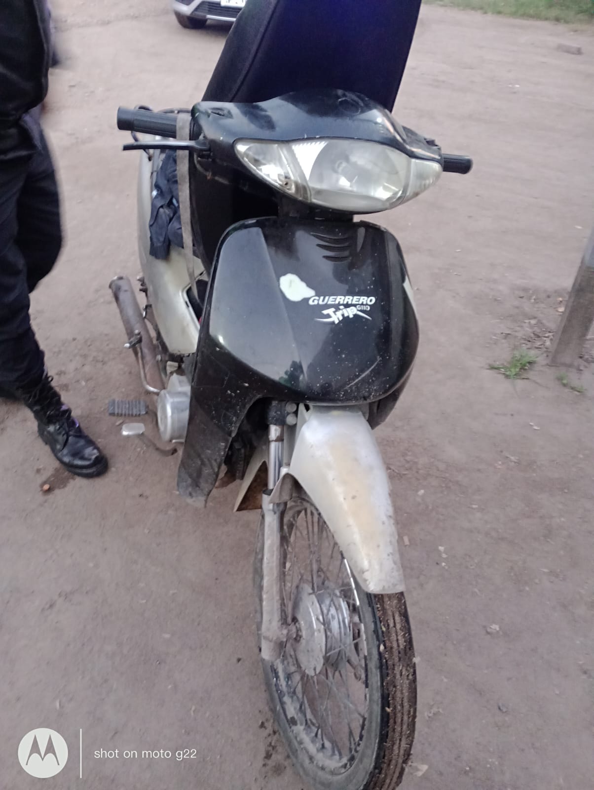 Mediante sus recorridos preventivos, los efectivos de la Policía Local-PLA pudieron interceptar al amanecer a 2 varones y una mujer, cuando empujaban una moto de color Gris, cuya patente habían escondido en la baulera del vehículo hacia el Sur.