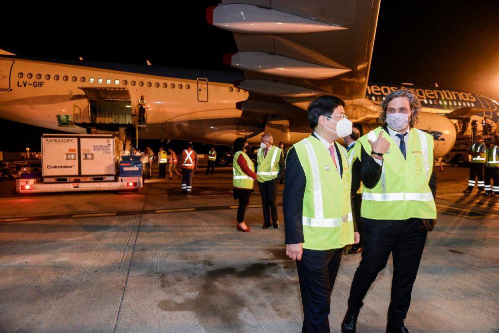 Aterrizó el avión de Aerolíneas Argentinas que trajo más de 900 mil dosis de la vacuna contra el coronavirus Sinopharm.