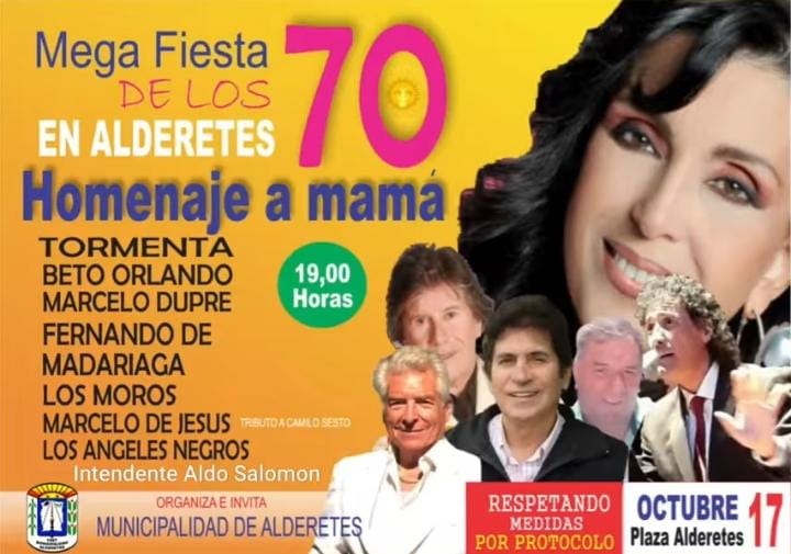 En la esquina de calles Urquiza y Caseros, el próximo domingo 17 de octubre, desde Hs. 20:00, se podrá disfrutar de espectáculos, al aire libre, totalmente gratis, con artistas que brillaron en los 70 y siguen vigentes en la actualidad.