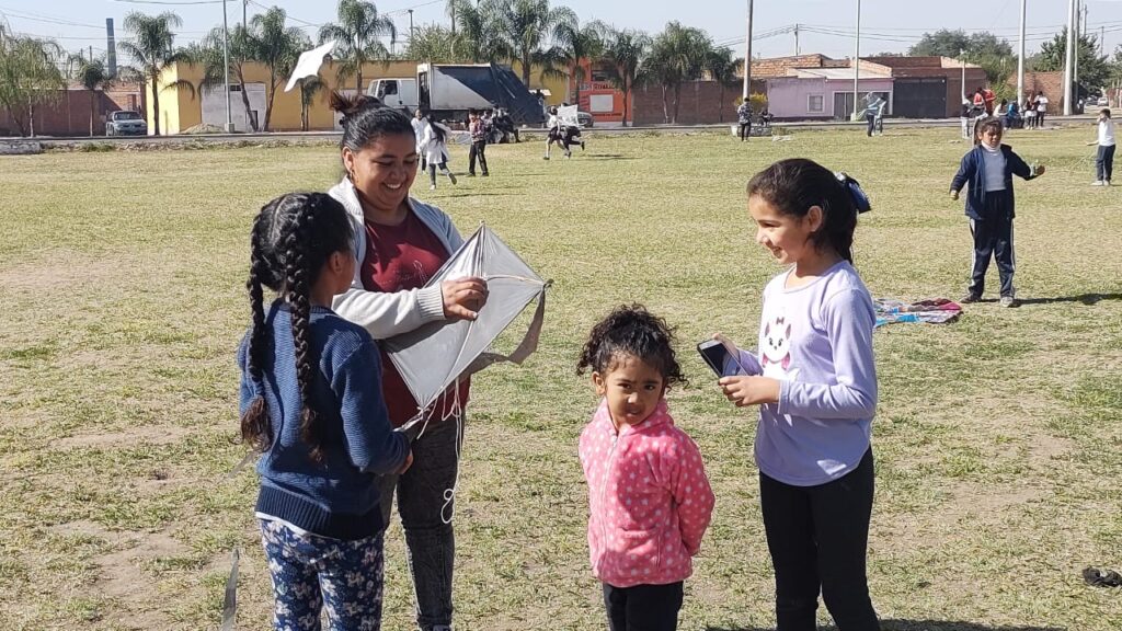 Cuya propuesta tuvo una gran adhesión. Y al momento de realizar dicha actividad, en el predio contiguo a dicho establecimiento, padres y alumnos desplegaron volantines de diversos tamaños, formas y colores, que a medida que levantaban vuelo, dejaban leer consignas que apuestan: al amor, el respeto, la solidaridad, la unión y la paz.