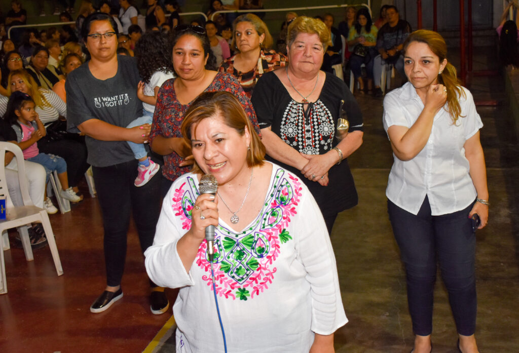Una desbordante concurrencia femenina completó la capacidad del Polideportivo del Instituto Rivadavia, ante la convocatoria de la Legisladora Graciela Gutiérrez
