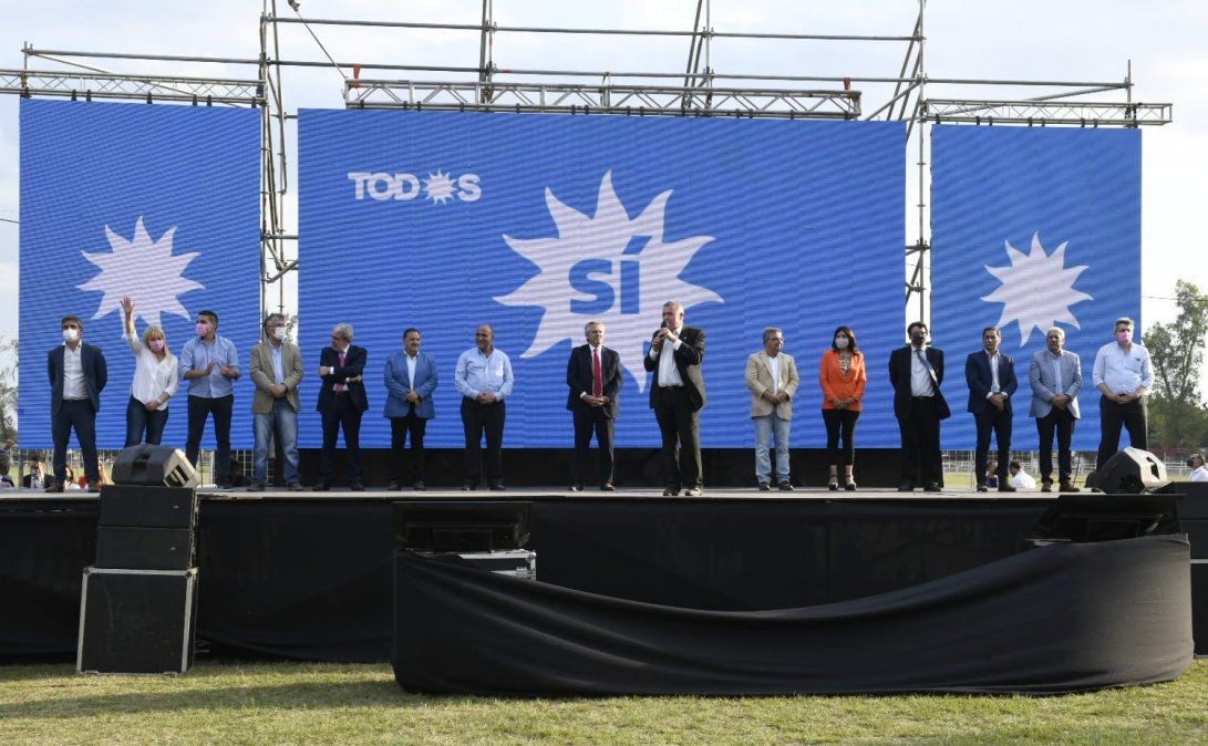 El gobernador Osvaldo Jaldo, junto al presidente Alberto Fernández, el jefe de gabinete Juan Manzur, encabezaron el multitudinario acto en el Hipódromo de Tucumán, ante más de 40000 personas que se dieron cita para escuchar al primer mandatario.