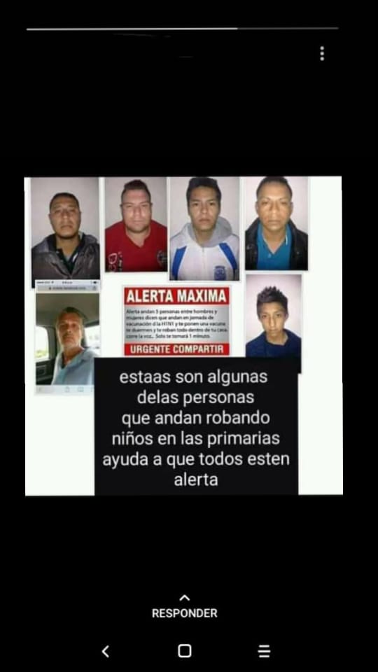Y todo se disparó a partir de que: una supuesta maestra y una supuesta madre, decían que un auto negro anda merodeando para robar niños.