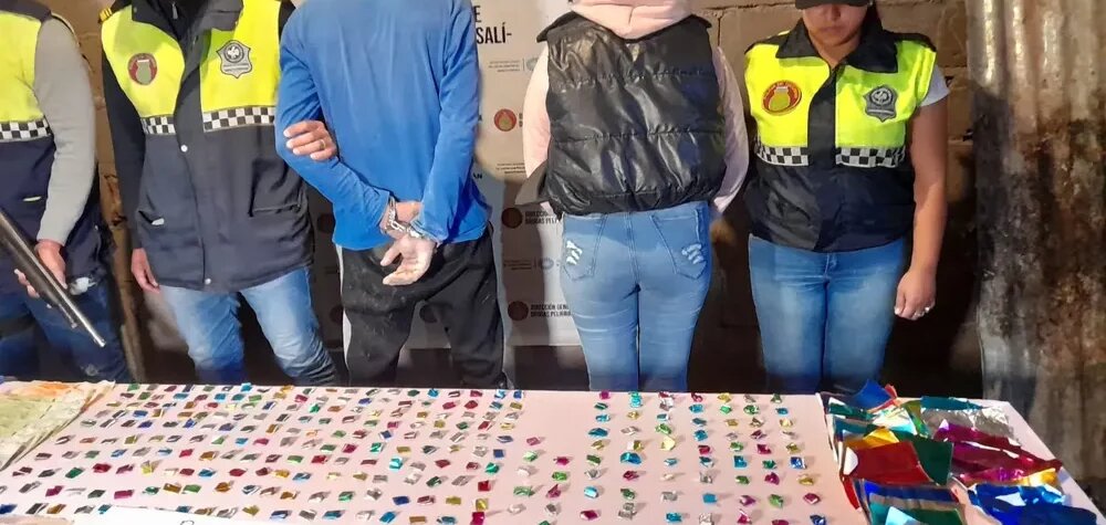 Tras una intensa investigación por narcomenudeo, los efectivos de la División Drogas Peligrosas (Didrop) Este aprehendieron este miércoles a dos personas y secuestraron 300 “ravioles” de cocaína, una piedra de esa sustancia y recortes de papel para sus envoltorios. Además, celulares y dinero en efectivo. Fue en el marco de una medida de allanamiento concretada en una vivienda del Asentamiento Virgen del Rosario de la ciudad de Alderetes.