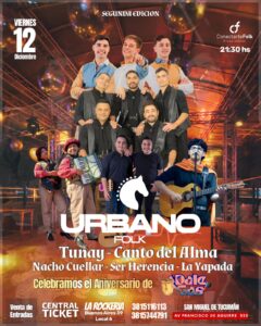 La ciudad de San Miguel de Tucumán vivirá una noche explosiva con la llegada de la segunda edición de Urban Folk, un encuentro que combina lo mejor de la peña tradicional con la frescura del cachengue y la fiesta moderna. La cita será el viernes 12 de diciembre a las 21:30 horas en Av. Francisco de Aguirre 535.