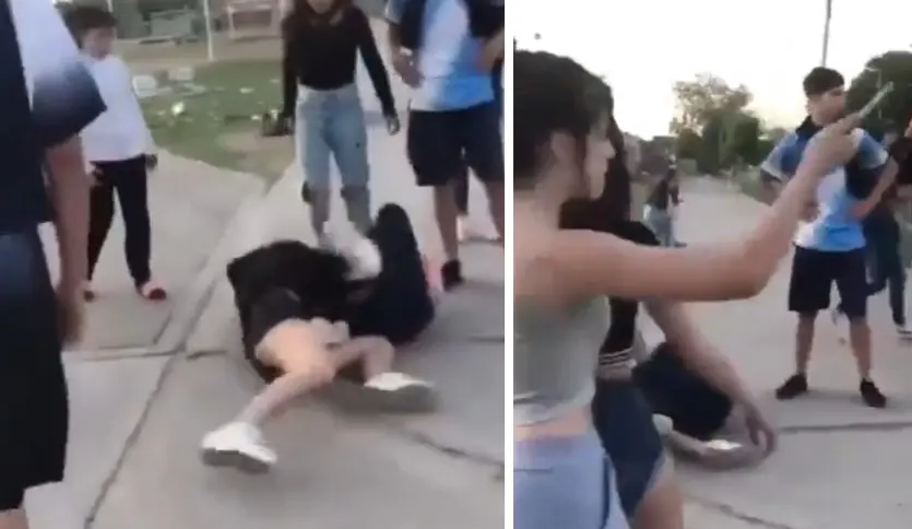En las imágenes se puede observar a dos chicas peleando con brutalidad, mientras una tercera sostiene un cuchillo en la mano, lista para intervenir. “Vení que te pincho”, se escucha decir a una de las agresoras.