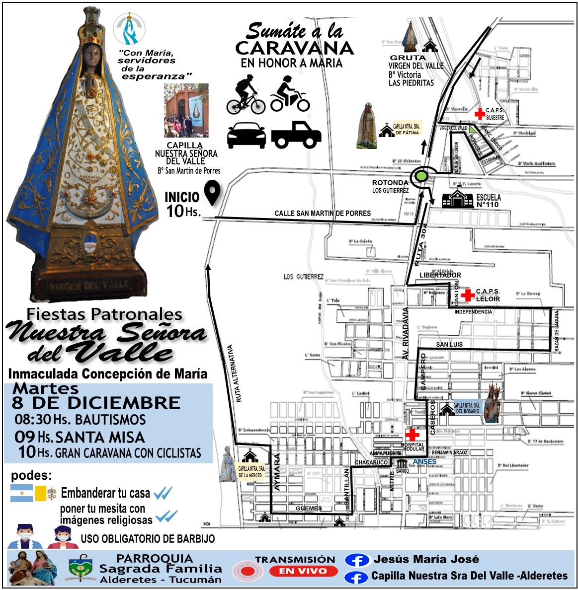 Para ello se invita a los vecinos de los barrios, a que adornen las calles y casas para recibir a la Madre del Valle, en esta atípica Celebración de la Inmaculada Concepción.