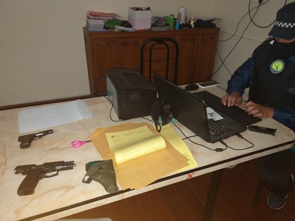 En cuyo garaje encontraron el auto que debía ser secuestrado para el peritaje, al igual que un revólver que lo habían escondido en un baúl.