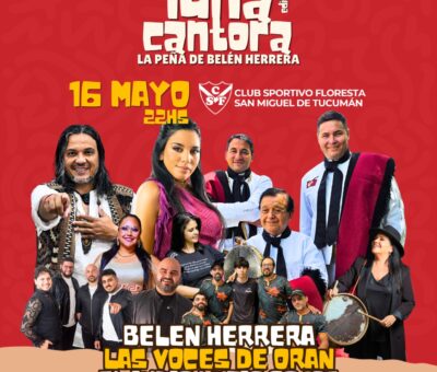 Mas informaciónSEGUNDA EDICIÓN DE LUNA CANTORA, LA PEÑA DE BELÉN HERRERA - Sábado 16 de mayo – 21:00 hs - Club Floresta – Av. Colón 471, San Miguel de Tucumán. Bel