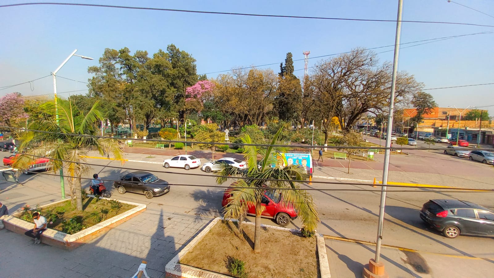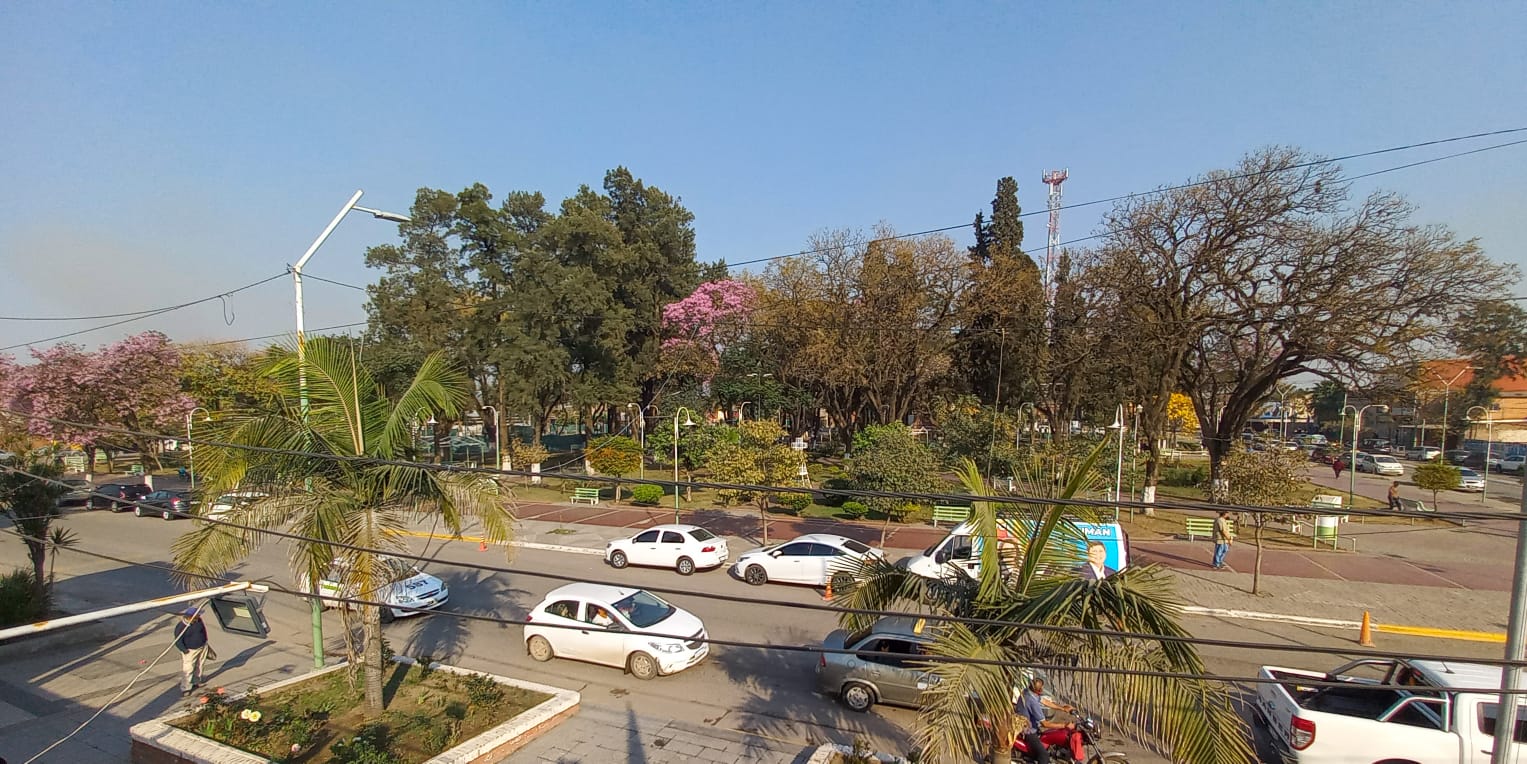 Desde el centro de la plaza, podía divisarse esas palomitas blancas que acudían a la Escuela Fray Manuel Pérez a tomar clases presenciales y por allá por el edificio municipal podía verse un camión de alumbrado público que salía hacia el Barrio Güemes para instalarle más de 70 artefactos de LED.