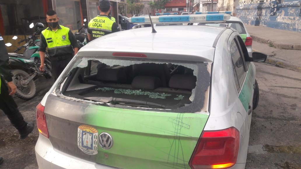 Con tal indicación, arribó al Barrio Jerusalén un automóvil de la PLA que logró individualizar e interceptar a los ladrones, los cuales comenzaron a arrojar piedras, con las cuales hirieron la cabeza y el hombro de uno de los policías locales, además de haberle roto la luneta al vehículo oficial.