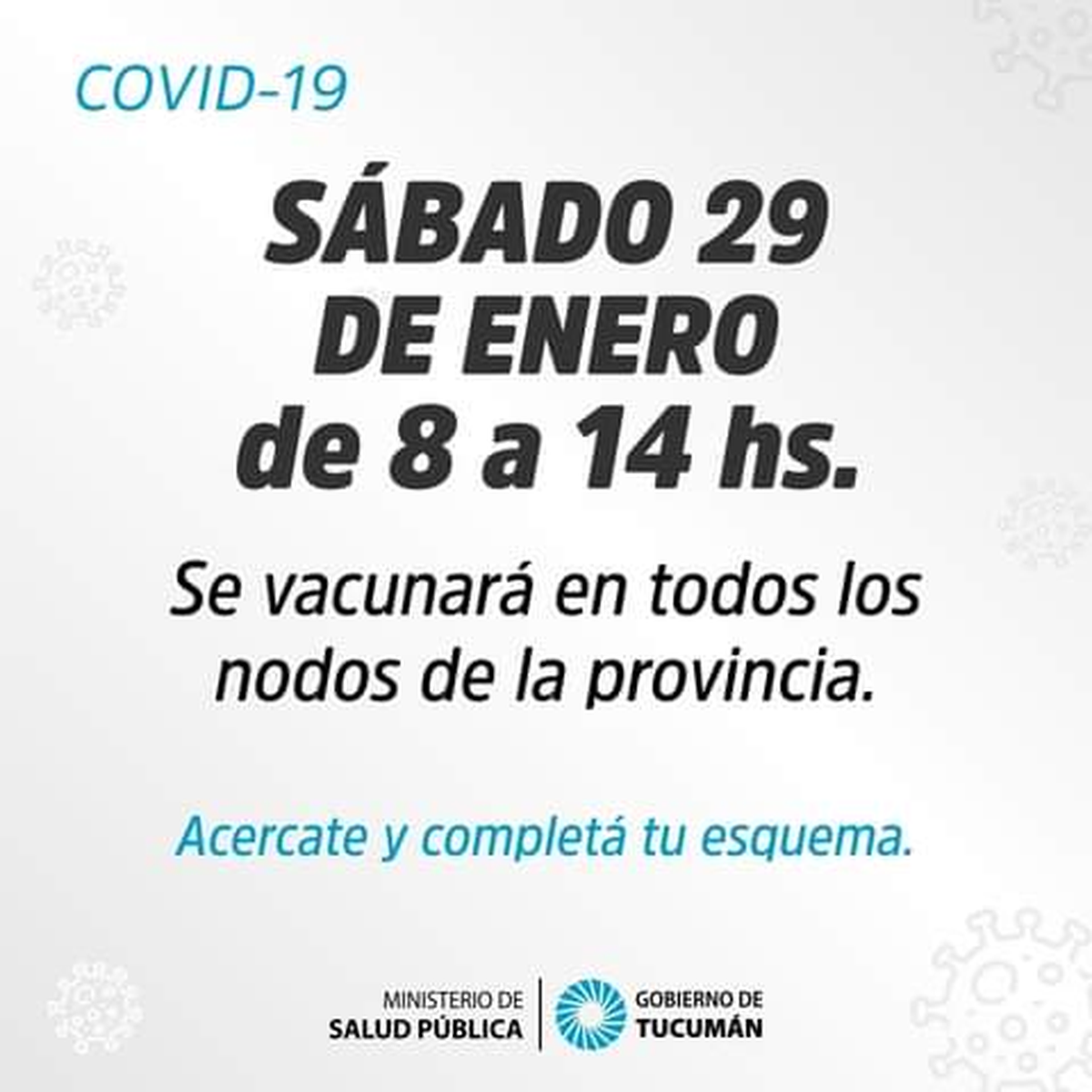 Según informó el Ministerio de Salud, este sábado 29, abrirán todos los nodos de vacunación, de 8 a 14. Se colocarán 1a y 2a dosis, y también dosis de refuerzo.