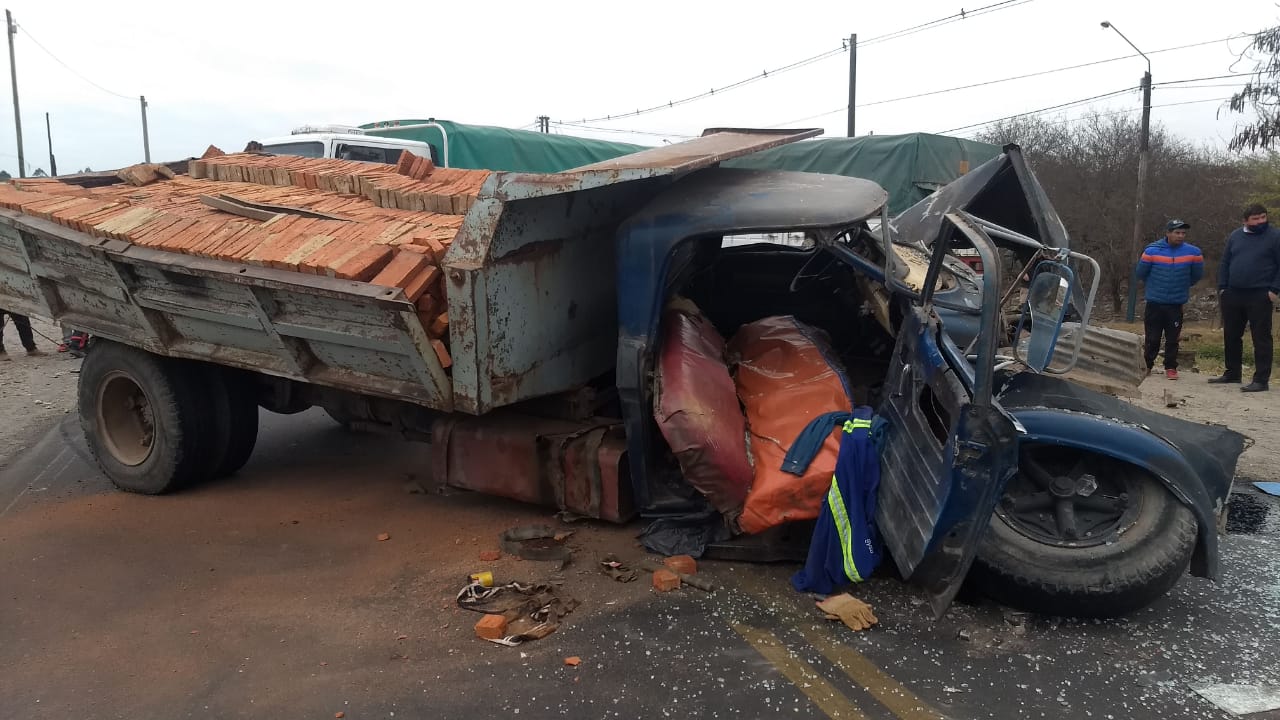 Solo que este gélido mediodía, todo se mostraba tenebroso por la espectacularidad de un choque frontal de camiones y por la impresión escalofriante que mostraba todo el sector, al ser salpicado de gasoil, aceite, partes de motores, carrocerías y más que nada, por el golpe de knock out que recibió un viejo camión azul, que pese a sostener su carga de ladrillos, ya pasó a la categoría de los ínutilizables.