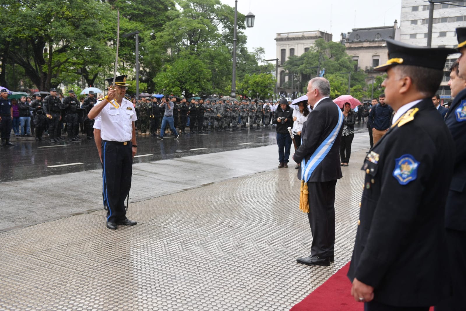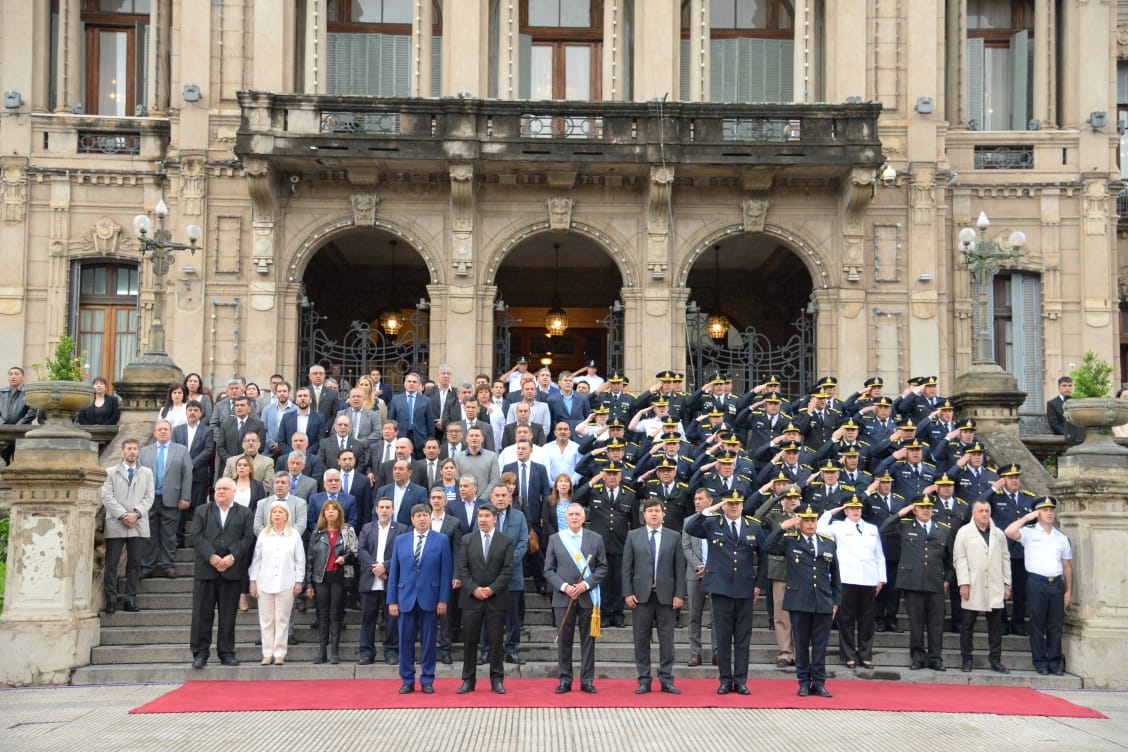En el marco de los festejos por el 202° aniversario de la Policía de Tucumán, el gobernador Osvaldo Jaldo presidió el acto en la explanada de Casa de Gobierno.