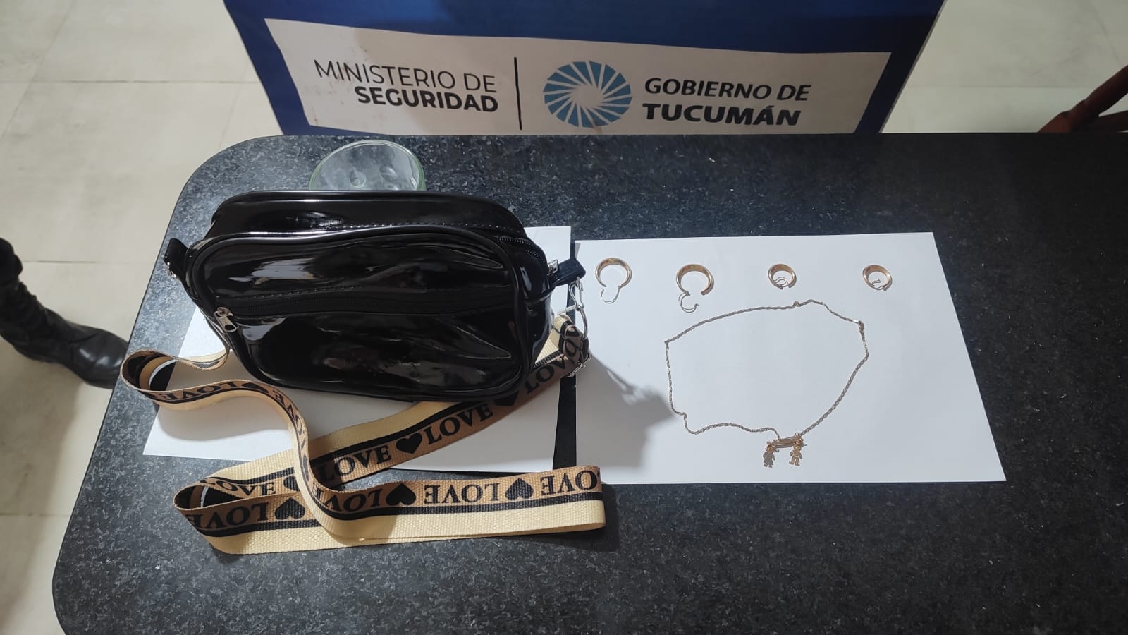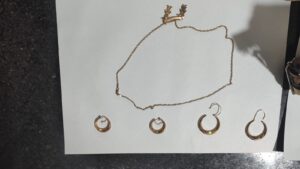 Por lo tanto en el domicilio donde se realizó el dispositivo, lograron secuestrar 2 pares de aros de oro, una cadena de oro de 18 kilates con su dije y una cartera simil cuero de color negro con una tira de color dorado que rezaba la palabra “LOVE”.