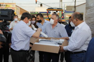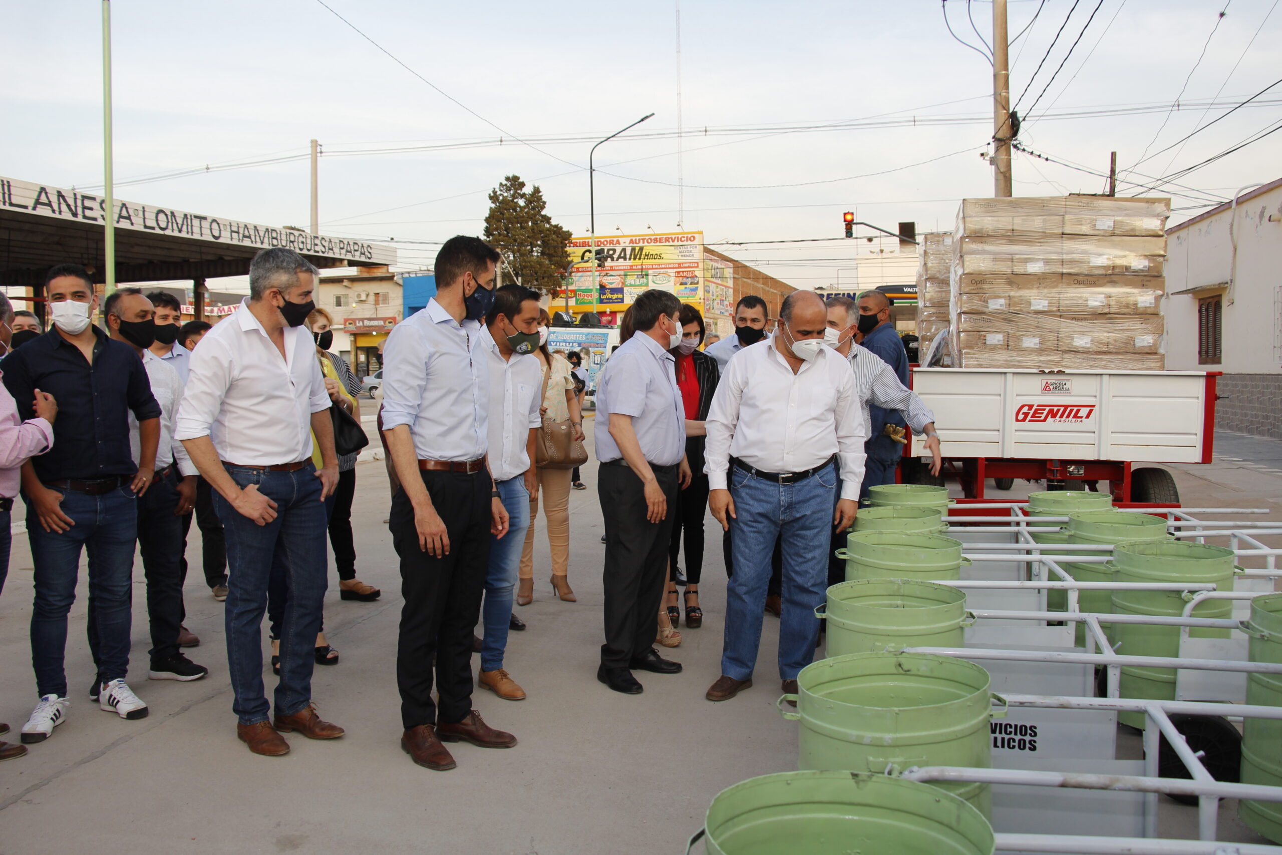 Durante su estada en Nuestra Ciudad, Manzur y Jaldo también entregaron al sector municipal de Espacios Verdes: un tractor, un carro helvético, desmalezadoras y 50 tachos para agilizar el barrido y limpieza de las calles.