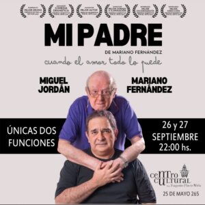 Llega desde Buenos Aires la obra multipremiada “Mi padre, cuando el amor todo lo puede”, la misma subirá a escena en el Auditorio del Centro Cultural Virla el próximo viernes 26 y sábado 27 de septiembre a las 22 hs., protagonizada por Mariano Fernández y Miguel Jordán.