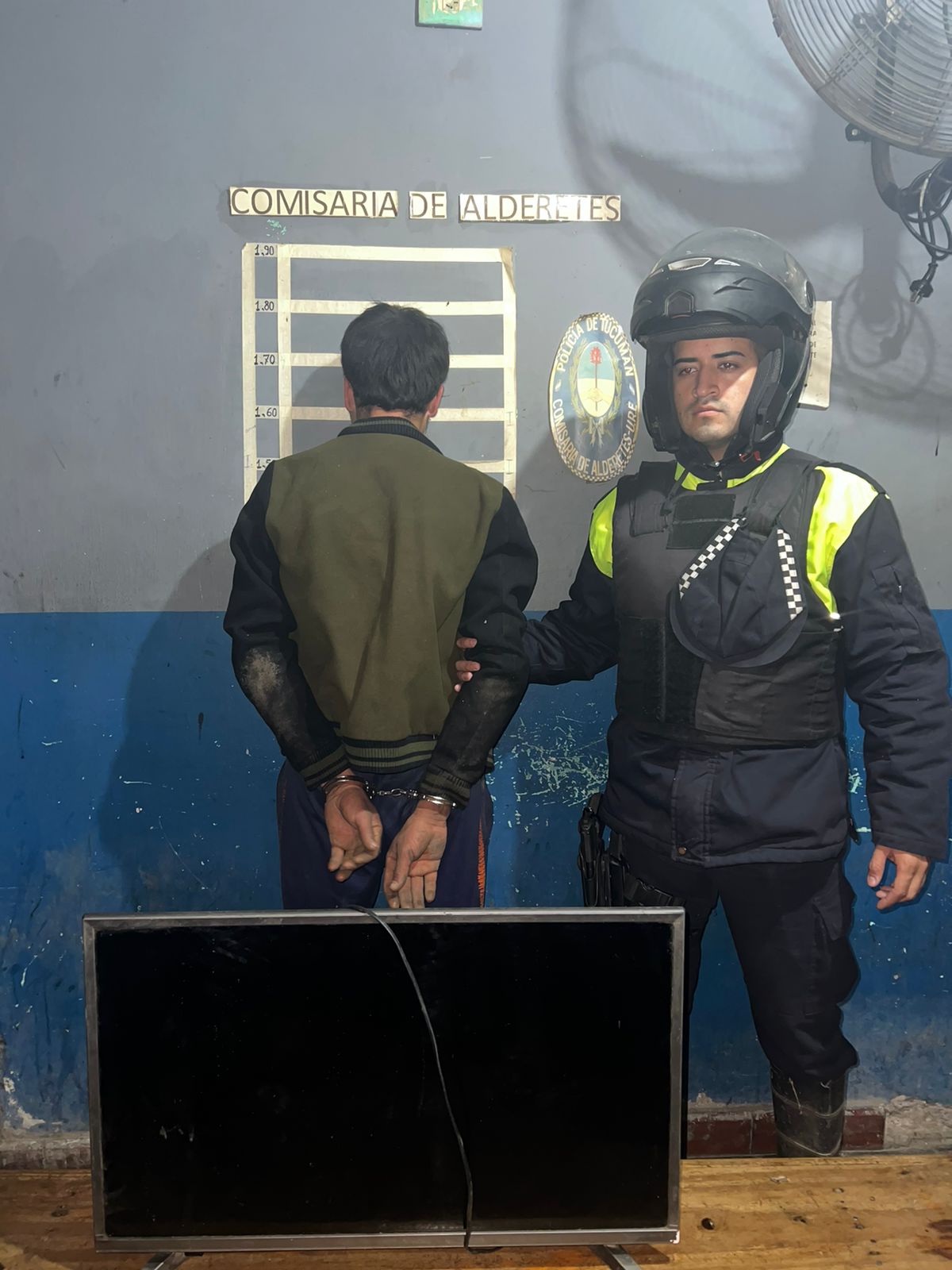 Todo sucedió en el sector del gasoducto sobre calle independencia, cuando en la madrugada de este viernes, la patrulla motorizada de la policía provincial, realizaba recorridos preventivos y sorprendió a un sujeto que avanzaba sigilosamente con un televisor LED bajo el brazo.