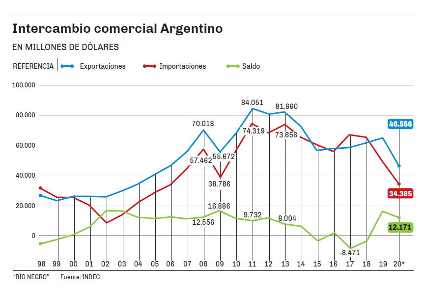 El intercambio comercial del 2020 cerró con un superávit de US$12.528 millones