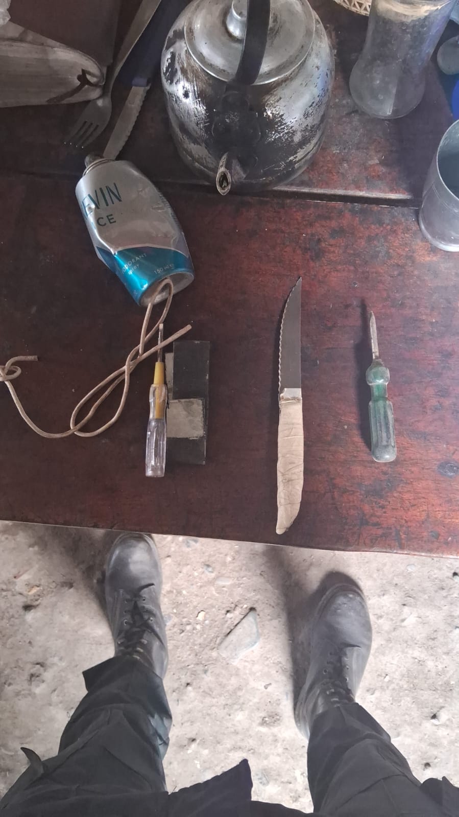 Además, se secuestró un cuchillo tipo sierrita con mango color blanco.