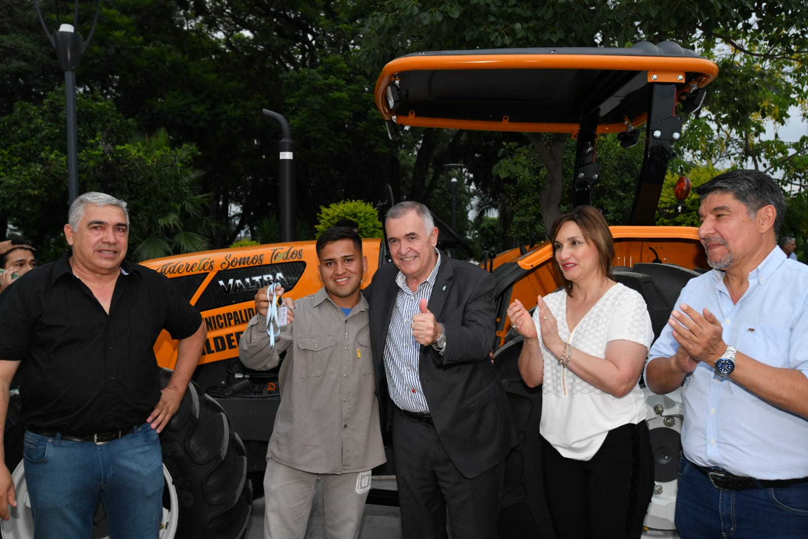 Junto al vicepresidente 1° de la Honorable legislatura de Tucumán, Aldo Salomón, la ejecutiva municipal recibió a las autoridades provinciales para iniciar con la presentación del nuevo tractor con un acoplado playo, de una capacidad de 40 toneladas de carga y 20 nuevas desmalezadoras para sumar al servicio de la dirección de Espacios Verdes, algo muy necesario en la temporada estival.