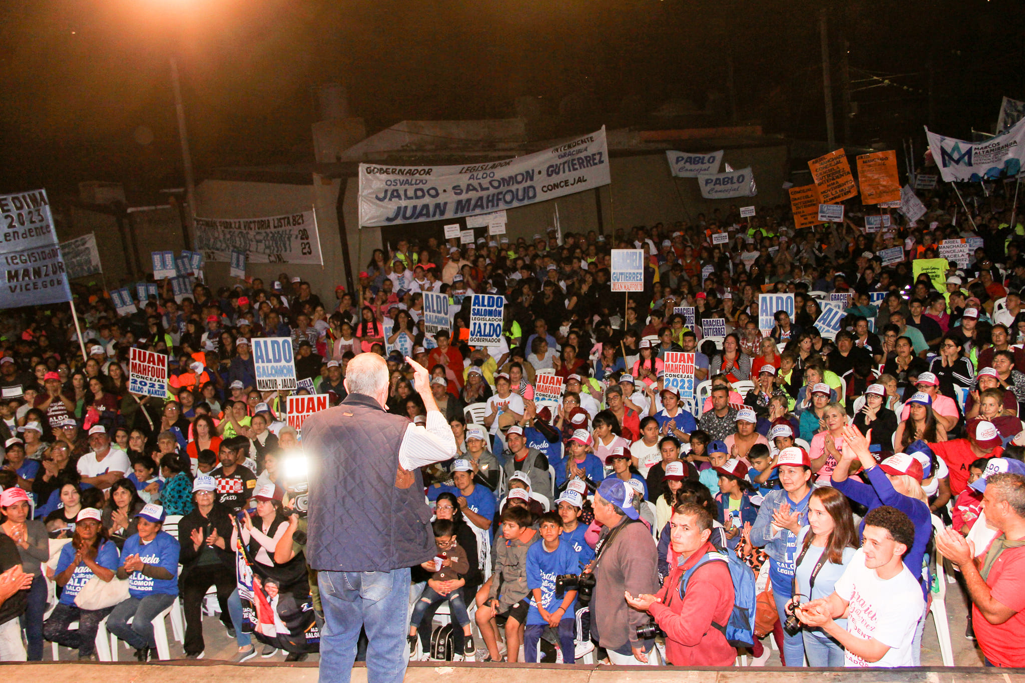 Mas de 10 mil personas acudieron el pasado jueves a la convocatoria de campaña realizada por el intendente Héctor Aldo Salomón y la legisladora Graciela Gutiérrez, en la que fue orador principal el candidato a gobernador, Osvaldo Jaldo.