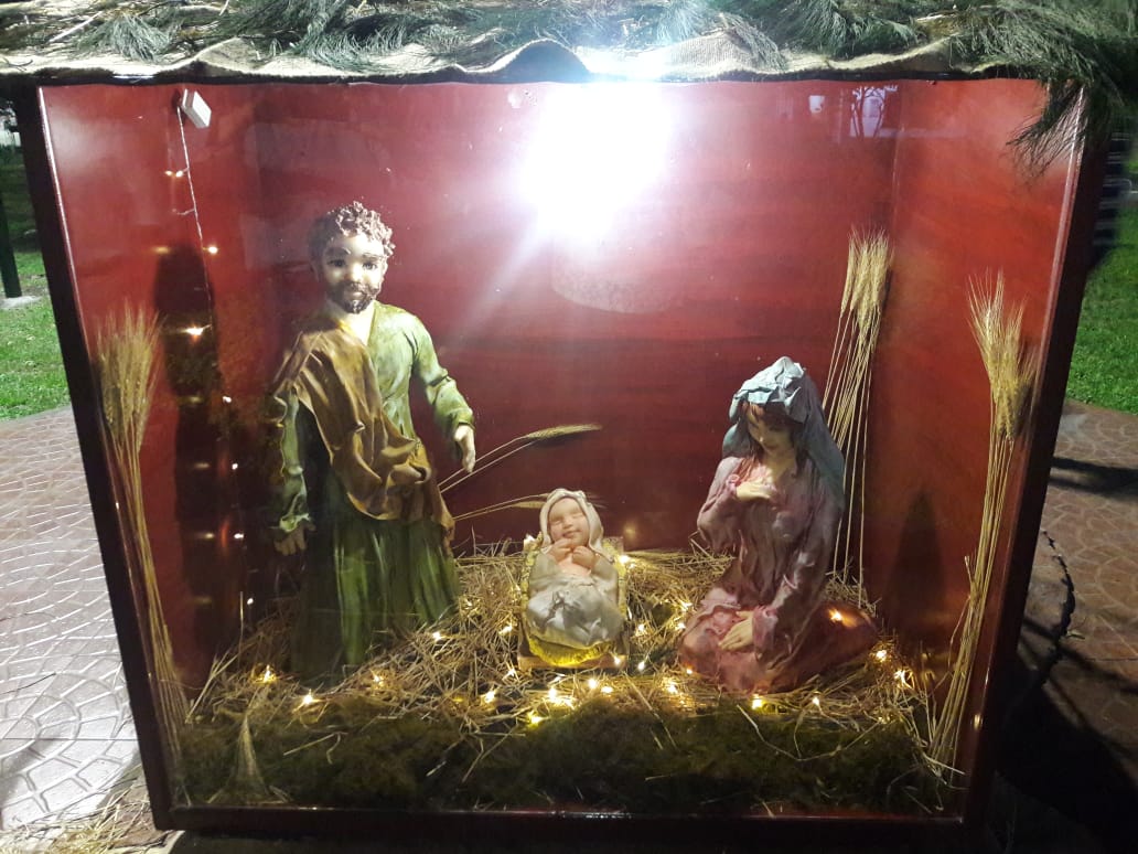 Recorriendo el paisaje se puede apreciar las Pérgolas y árboles que con miles de pequeñas luces realzan la belleza natural del lugar y en un punto destacado, en absoluta armonía con la representatividad del monumento recordatorio de la visita papal a nuestra ciudad, se puede encontrar el pesebre que nos recuerda los hechos transcurridos en Belén de Judea que en esta época de año son tan caros a los sentimientos de la población creyente.